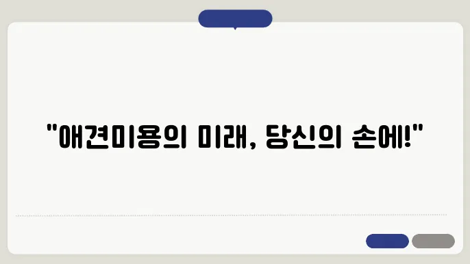 결론적으로 애견미용사 3급 자격증은 예비 미용사들에게 기초적인 지식과 기술을 배우고 성장할 수 있는 기회를 제공합니다. 이 자격증은 애견 미용 분야에서의 진로를 위한 든든한 첫걸음이 됩니다. 반려동물에 대한 사랑과 책임감을 가지고 애견 미용사로서의 고유한 정체성을 확립할 수 있도록 노력하는 것이 중요합니다. 지속적인 학습과 기술 습득을 통해, 경쟁이 치열한 미용 시장에서도 성공적으로 자리 잡을 수 있을 것입니다.